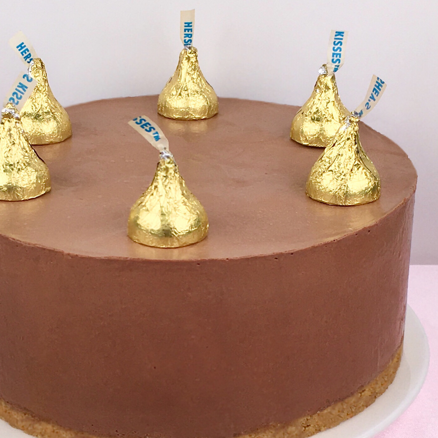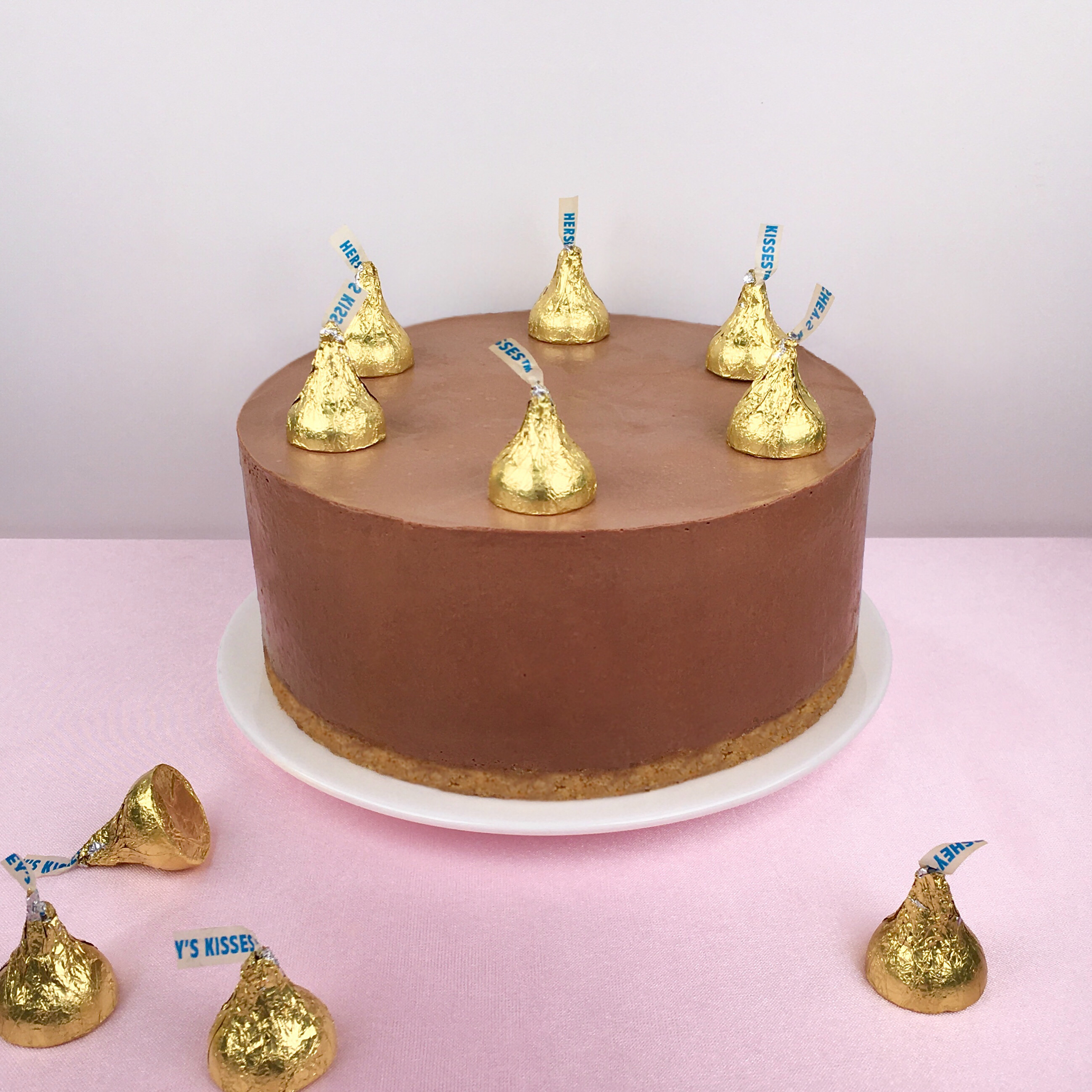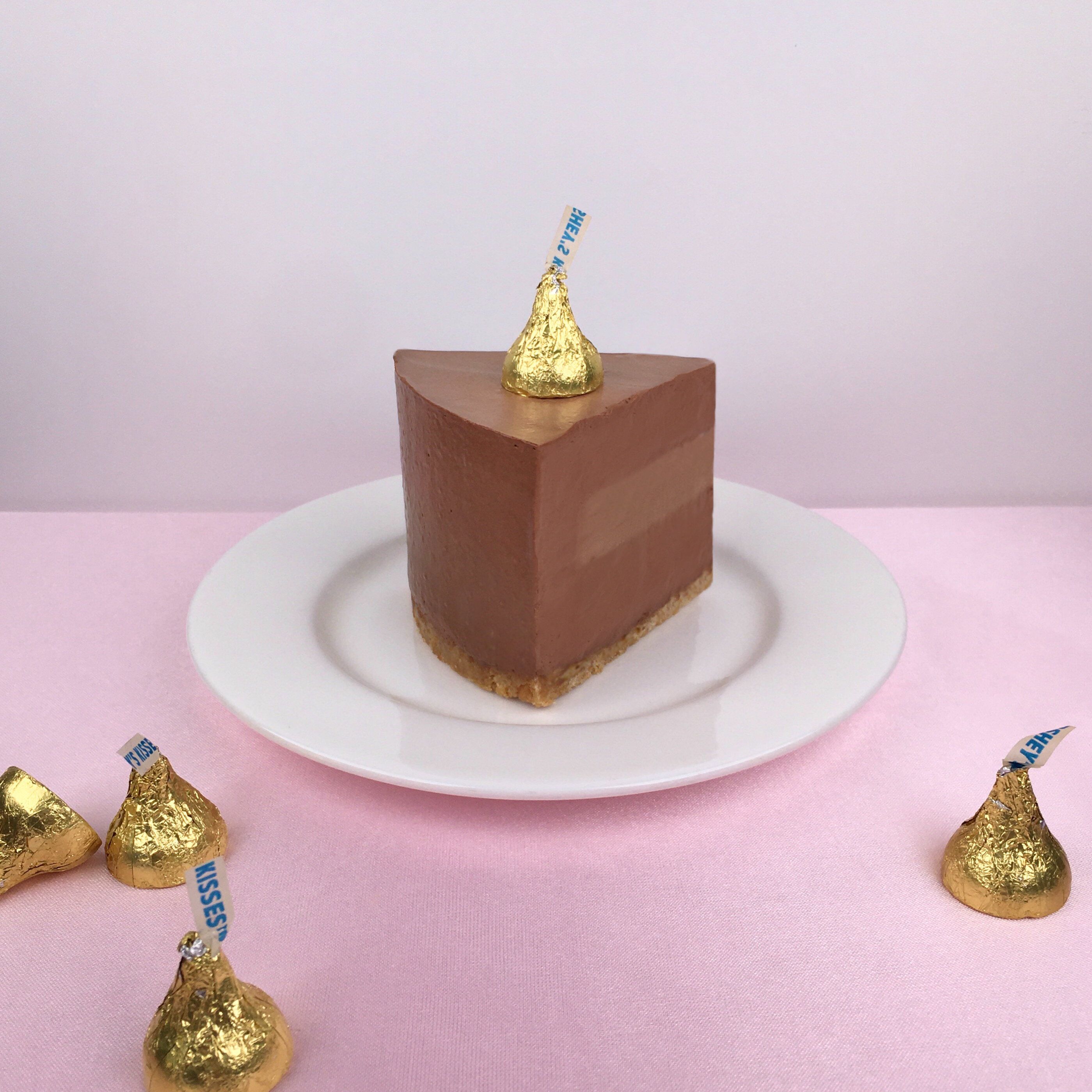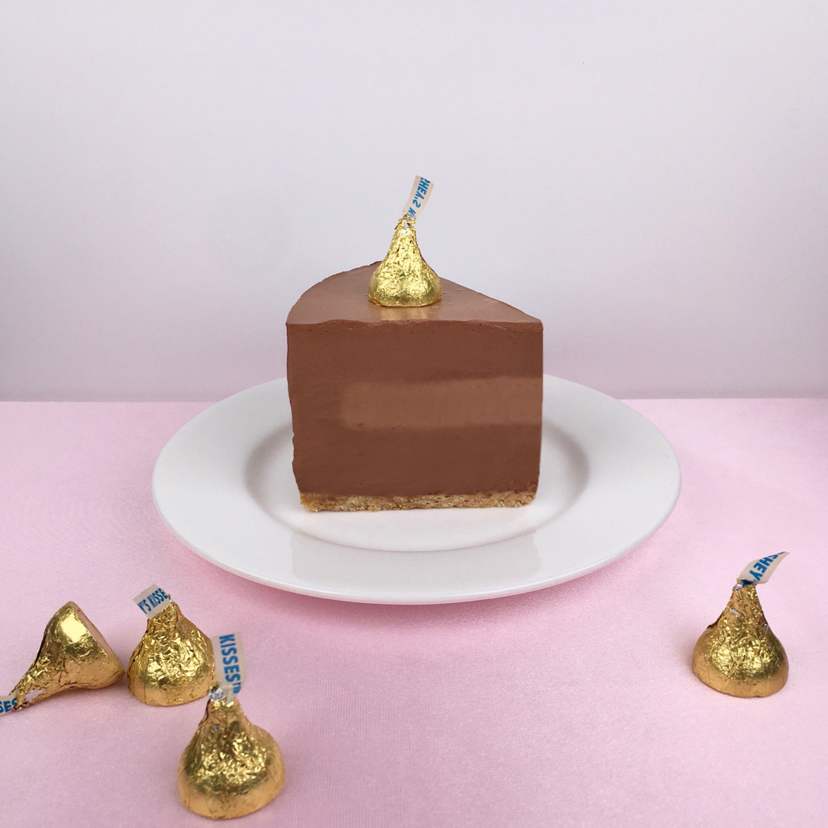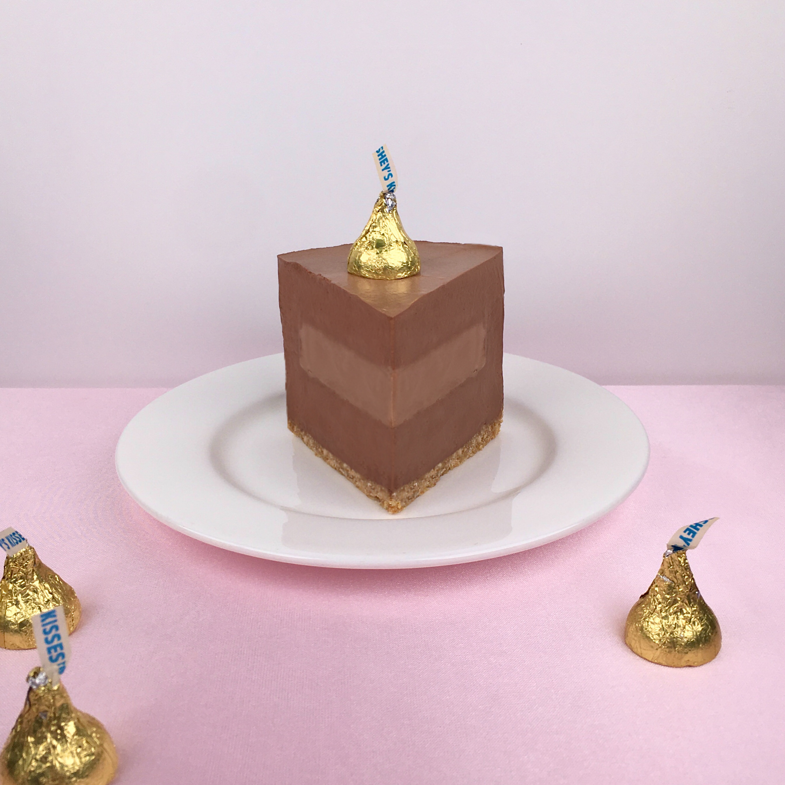 โ Pour half of Kisses Mousse on the Crust, flatten the top, and harden in the freezer for 10 minutes.