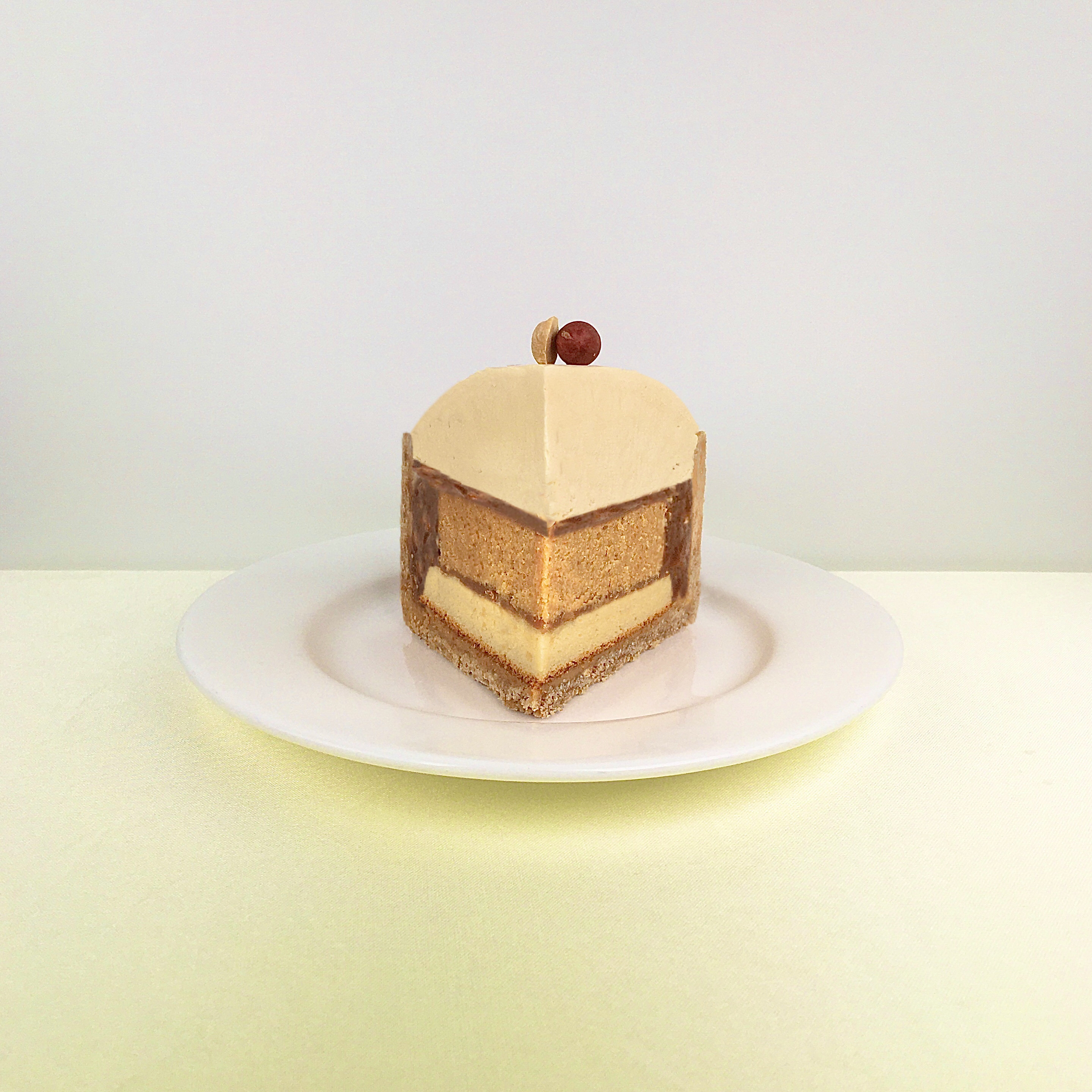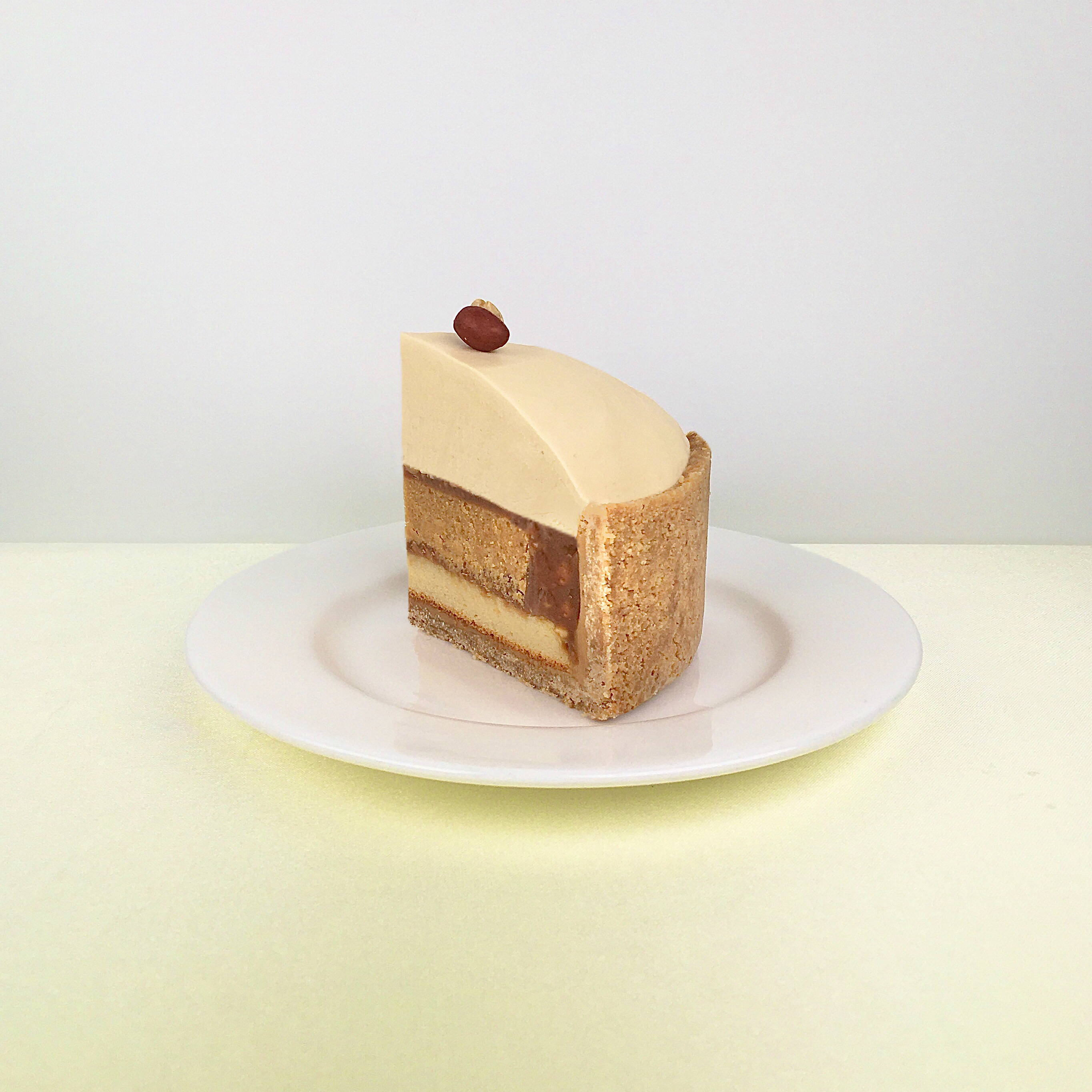 โค Put the remaining salted peanut caramel on top, flatten it with a mini spatula and harden it in the freezer for 30 minutes.