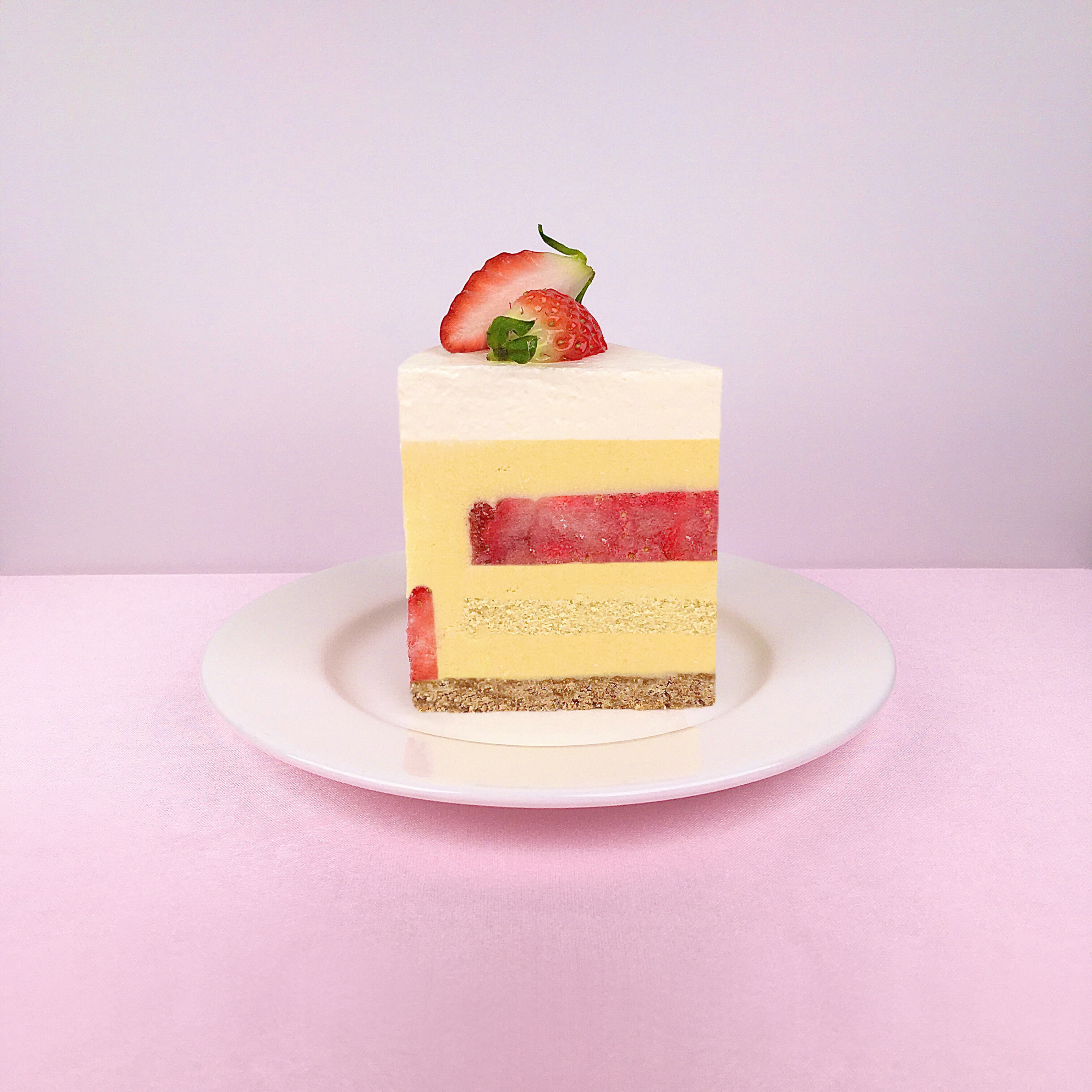 โฅ Put the remaining Mousseline Cream on top, smooth the top surface using a silicone spatula, and harden in the freezer for 30 minutes.