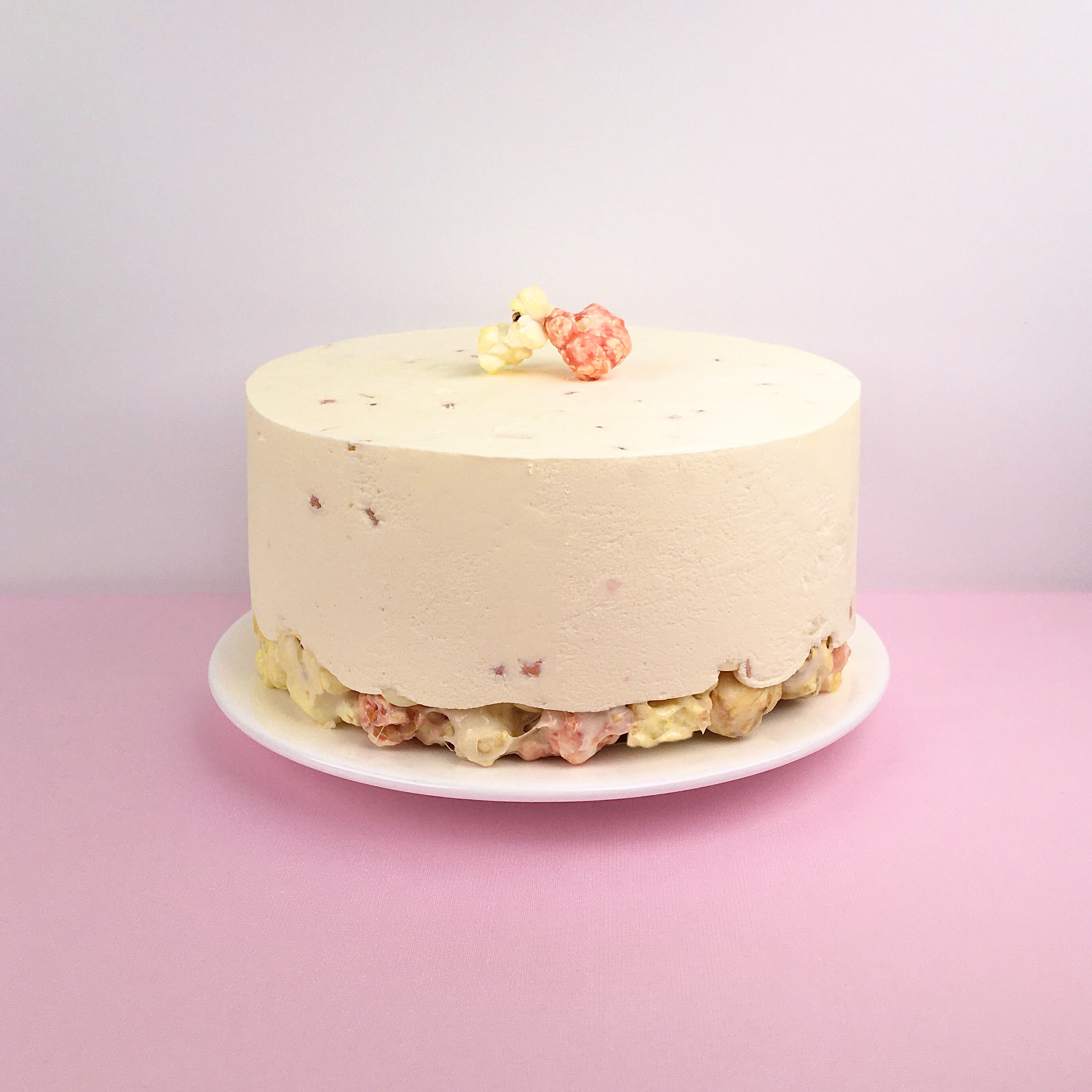 44g white chocolate, 2 pieces of rainbow popcorn for decoration