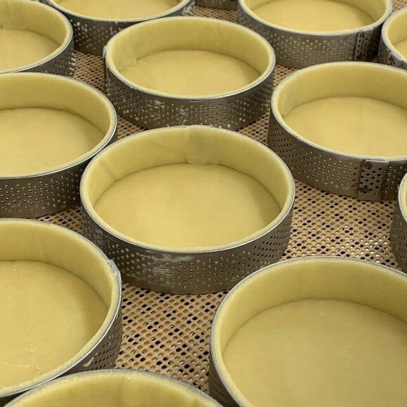 - pâte (๋ฐ๊ฐ๋ฃจ ๋ฐ์ฃฝ), sucrée (์คํ) ๋จ์ด์ ๋ป์ฒ๋ผ ๋ค๋ฅธ ๋ฐฐํฉ๋ค์ ๋นํด ์คํ์ ํจ๋์ด ๋ง์ด ๋ค์ด๊ฐ ๋ฐ์ฃฝ์ผ๋ก ๋ฐ์ญํ ์๊ฐ์ด ํน์ง์ ์ด๋ค. ๋ฒํฐ์ ์คํ์ ๋น์จ์ด 1:1์ด๋ค.