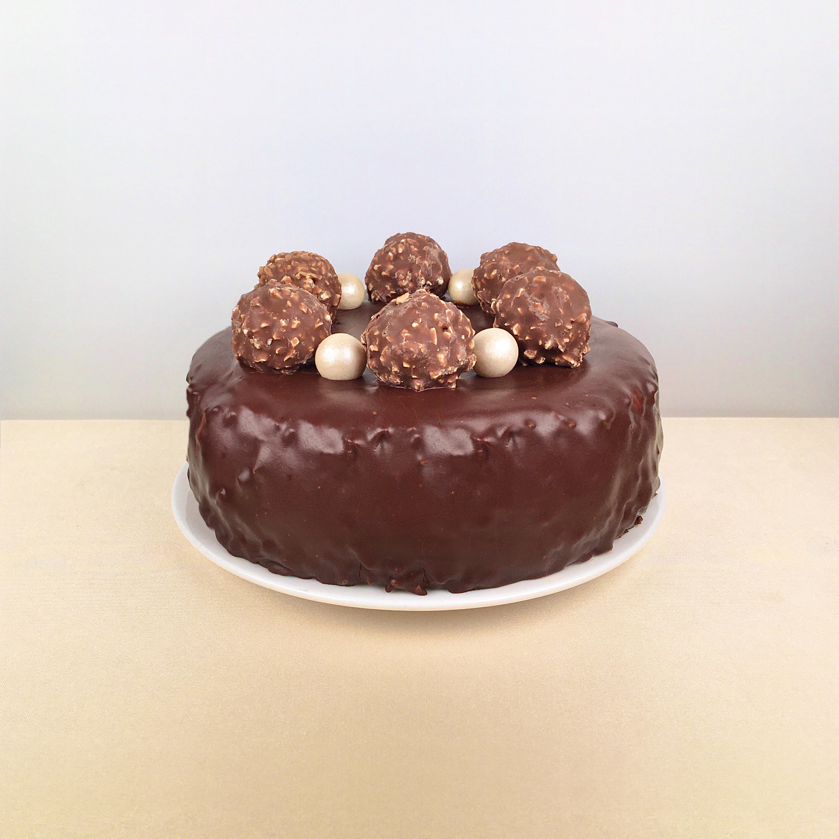 โง Decorate the top with Ferrero Rocher chocolate and pearl crunch.