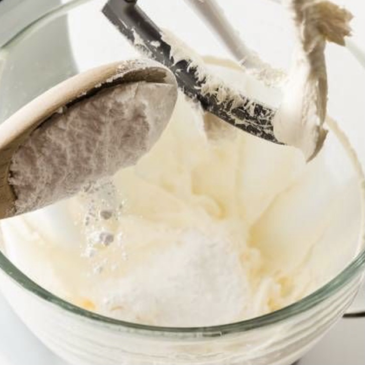 ๋ถํผ ํฐ ์ผ์ดํฌ๋ฅผ ์ป๊ณ ์ ํ ๋ ์ฌ์ฉํ๋ฉฐ ์ ์ง์ ์คํ์ ํผํฉํ์ฌ ํฌ๋ฆผ์ํ๋ก ๋ง๋ค๋ฉด์ ๋ฌ๊ฑ์ ์์ํ ํฌ์